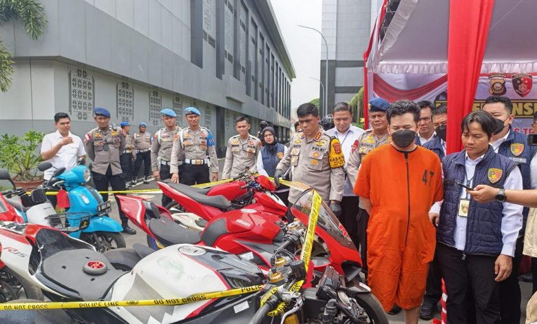 Barang bukti yang diamankan dari tersangka merupakan kendaraan mobil-mobil mewah yang bernilai miliaran rupiah termasuk kendaraan roda dua jenis sport.