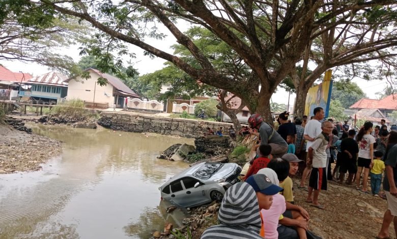 Mobil Sigra Terperosok ke Anak Sungai di 5 Ulu Palembang