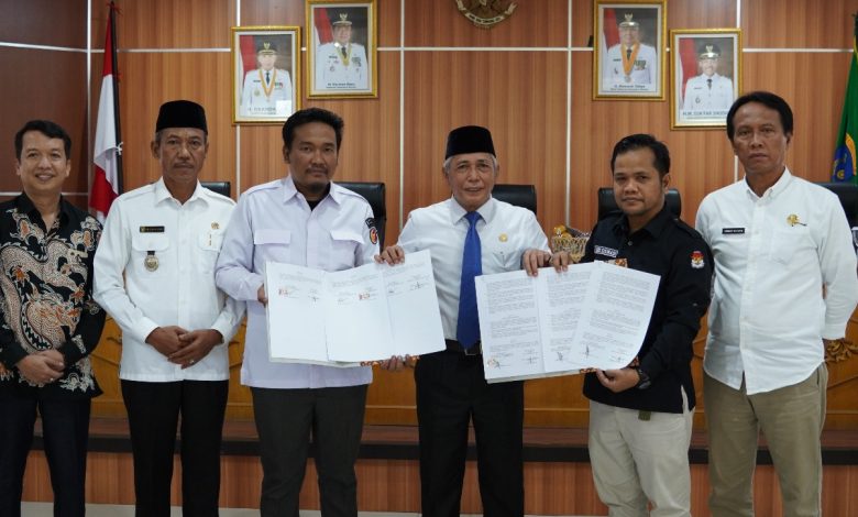 OKI, Medconas.com—–, Bupati OKI, H. Iskandar,SE didampingi Wakil Bupati OKI, H.M. Djafar Shodiq bersama dengan Komisi Pemilihan Umum (KPU) dan Badan Pengawas Pemilihan Umum (BAWASLU) setempat menantangani Naskah Perjanjian Hibah Daerah (NHPD) di Ruang Bende Seguguk I. Rabu, (25/10).