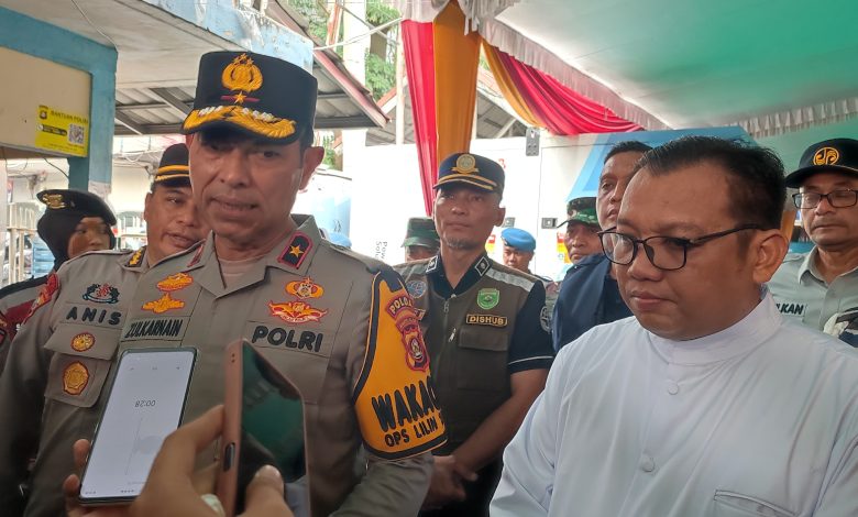 Palembang,Medconas.com—-Wakapolda Sumsel melakukan pantauan keamanan perayaan Misa Natal di beberapa gereja di Kota Palembang salah satunya di Gereja Katolik Paroki St Yoseph di Jalan Sudirman Kecamatan Ilir Timur I Palembang pada Minggu (24/12/2023).