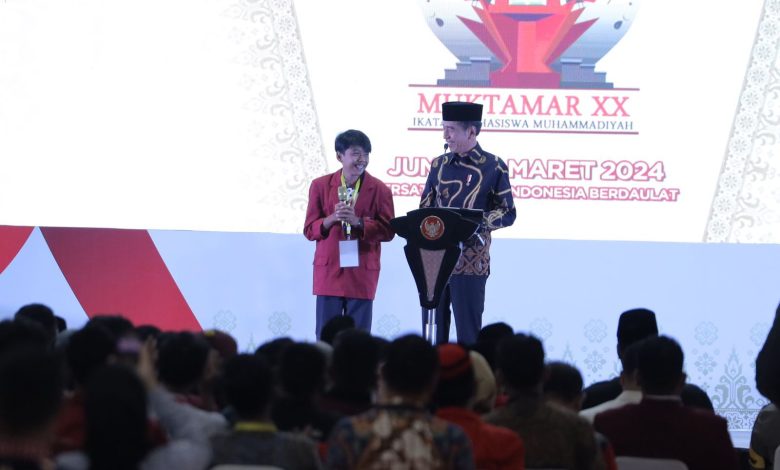 pada malam hari ini, secara resmi Saya buka Muktamar ke dua puluh Muktamar Ikatan Mahasiswa Muhammadiyah tahun 2024,” kata Presiden saat membuka muktamar.