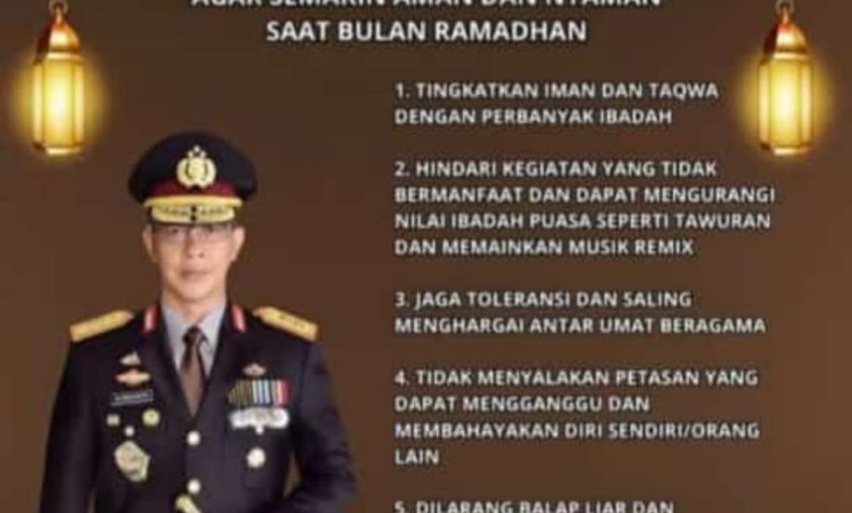 . Kapolda Sumsel Irjen Pol Rachmad Wibowo memberikan himbaun kepada umat muslim di Sumsel selama menjalankan bulan suci ramadhan 1445 Hijriyah.