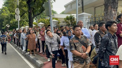 Antrean masyarakat yang mengular sejak pagi di halaman Istana Negara menunjukkan antusiasme yang besar untuk bisa bersilaturahmi dengan Presiden Jokowi.