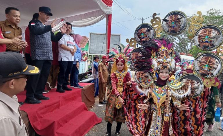 Pelepasan peserta lomba pawai karnaval ditandai dengan pengibaran bendera start oleh Pj Bupati Banyuasin Muhammad Farid.