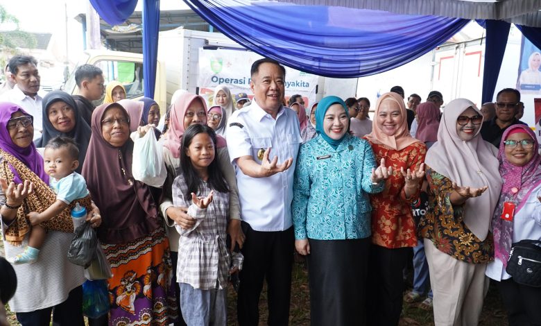 Wagub Cik Ujang Didampingi Staf Ahli PKK Sumsel Lidyawati CU Tinjau Operasi Pasar Murah di Sukamaju Sako