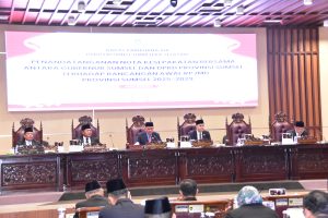 “Pada hari ini kita akan melakukan tahapan pendatanganan nota kesepakatan antara Gubernur Sumatera Selatan dengan Dewan Perwakilan Rakyat Daerah Provinsi Sumatera Selatan tentang Rancangan Awal RPJMD Provinsi Sumatera Selatan tahun 2025-2029, hal ini memenuhi amanat dari Peraturan Menteri Dalam Negeri Republik Indonesia Nomor 86 tahun 2017 pasal 49 ayat (5) bahwa hasil pembahasan dan kesepakatan terhadap Rancangan Awal RPJMD dirumuskan dalam nota kesepakatan yang ditandatangani oleh Kepala Daerah dan ketua DPRD. Bab II huruf f angka 3 lampiran inmendagri nomor 2 tahun 2025 tentang pedoman penyusunan rencana pembangunan jangka menengah daerah dan rencana strategis perangkat daerah tahun 2025-2029, bahwa hasil pembahasan bersama ranwal RPJMD dirumuskan dalam nota kesepakatan yang ditandatangani oleh Kepala Daerah dan Dewan Perwakilan Rakyat Daerah dan juga pasal 67 ayat (6) peraturan DPRD Provinsi Sumatera Selatan nomor 19 tahun 2025 tentang perubahan kedua atas peraturan DPRD Provinsi Sumatera Selatan Nomor 22 tahun 2020 tentang tata tertib DPRD Provinsi Sumatera Selatan bahwa hasil rancangan awal RPJMD yang telah disempurnakan akan ditandatangani oleh Ketua DPRD Bersama Gubernur dalam rapat paripurna, selanjutnya untuk dibahas dijadikan rancangan peraturan daerah” Ketua DPRD Prov.Sumsel. Setelah penjelasan Ketua DPRD Prov.Sumsel dilanjutkan acara inti yaitu prosesi penadatangan penandatanganan nota kesepakatan Bersama antara DPRD Prov.Sumsel dan Gubernur Sumsel, dan paripurna pun berakhir. (Adv/Humas)