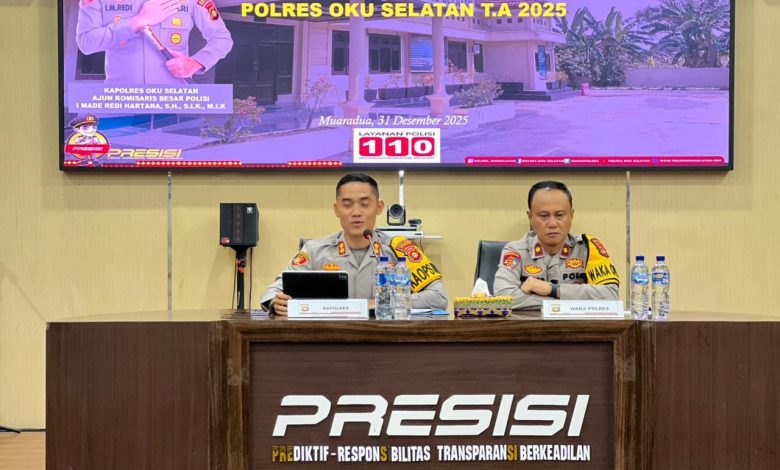 OKUS, Medconas.com—– Kepolisian Resor(Polres) OKU Selatan(OKUS) rilis capaian kerja sepanjang tahun 2025 yang menunjukkan tren positif dalam upaya penegakan keaamanan dan ketertiban di tengah masyarakat, berbagai indikator pun mengalami peningkatan signifikan mulai dari kegiatan preventif, patroli, hingga penyelesaian perkara sementara angka kejahatan umum mengalami penurunan,Selasa(31/12/25).
